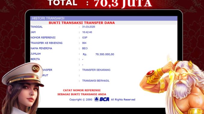 NAGA303 mengucapkan selamat kepada user id : CIN*** yang telah berhasil mendapatkan jackpot pada permainan SLOT DI LUCKY NEKO. Kemenangan sebesar Rp 70.300.000,-. telah dibayarkan LUNAS oleh pihak naga303 kepada pemilik user id setelah yang bersangkutan mengisi formulir withdraw. Proses pencairan dana berlangsung sangat cepat hanya dalam waktu 6-11 menit sudah berada dalam rekening pemilik user id. Bukti transfer yang dapat anda lihat adalah bukti SAH / VALID yang langsung di dapatkan melalui bukti transaksi dari Bank yang digunakan untuk pengiriman dana pada rekening pemilik user id. Terima kasih kami sampaikan kepada para pengguna setia naga303 yang telah menggunakan situs kami, sebagai Bandar Terpercaya yang pastinya membayar semua kemenangan member hingga lunas. Apakah Naga303 PENIPU ? Reputasi “NAGA303 TERPERCAYA” sudah sangat melekat. puluhan hingga ratusan ribu pengguna setia NAGA303 tetap menggunakan situs terbesar dan terbaik di Indonesia ini. Hapus rasa was-was dan khawatir anda, kemenangan anda berapapun PASTI dibayarkan hingga lunas.